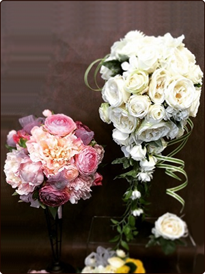 ◎生花では、季節によって入手困難なお花もアーティフィシャルフラワーでは、年中入手可能なため、ご希望のお花のブーケをお作りすることが出来ます。